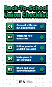 Show your IEA pride! Get an awesome poster for your classroom. And wear your local union T-shirt or IEA swag — you have a federally protected right to show you’re a union member.