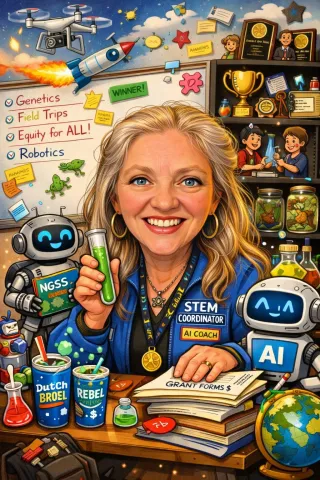 That same philosophy extends beyond her classroom. Ferro is also a prolific educator of other educators, mentoring new teachers, leading professional learning, and helping colleagues think critically about how learning happens. She now spends 20% of her time teaching in the classroom and the other 80% focused on educational technology instruction for other educators.